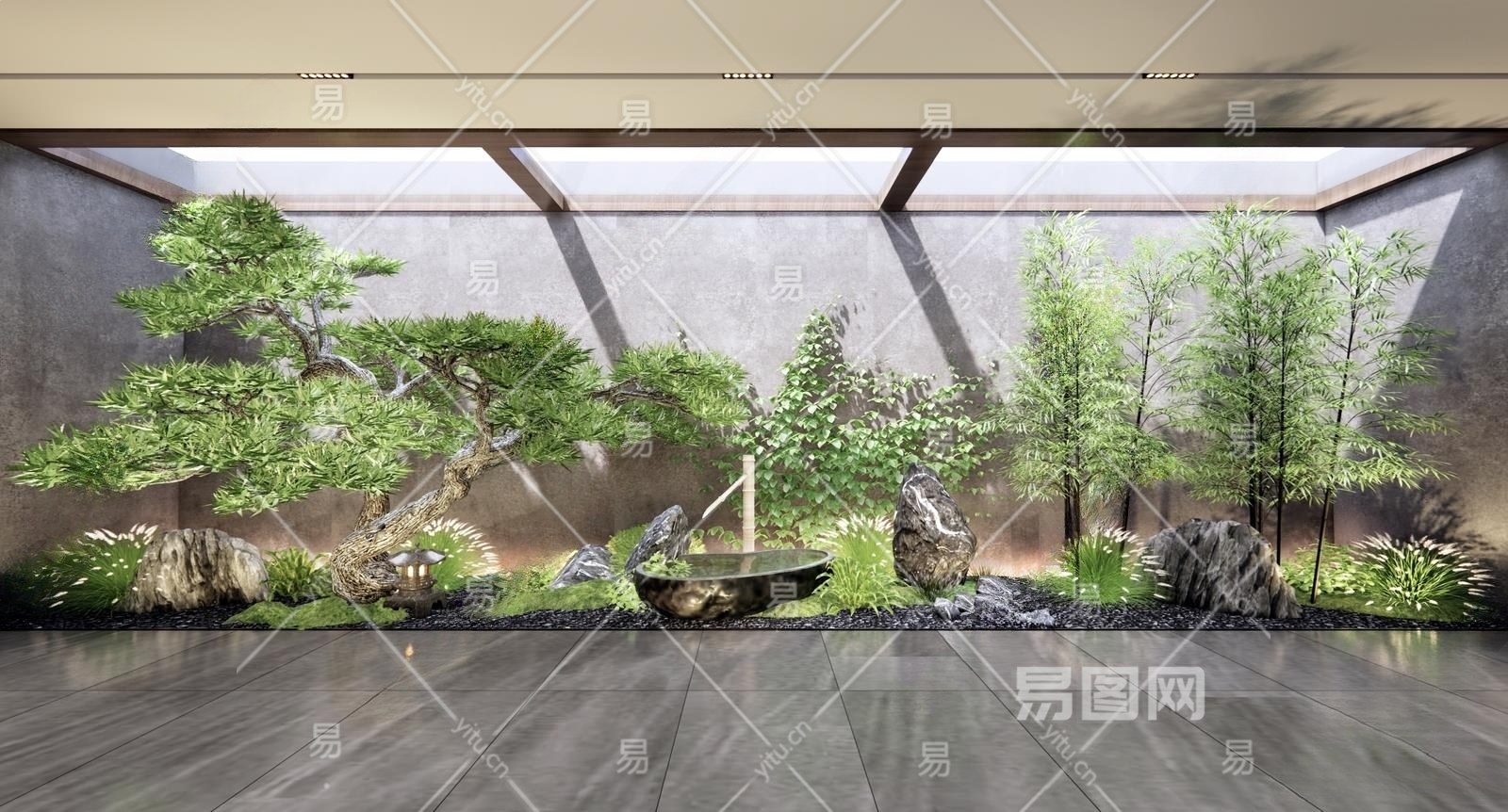 新中式室内中庭景观造景3D模型下载