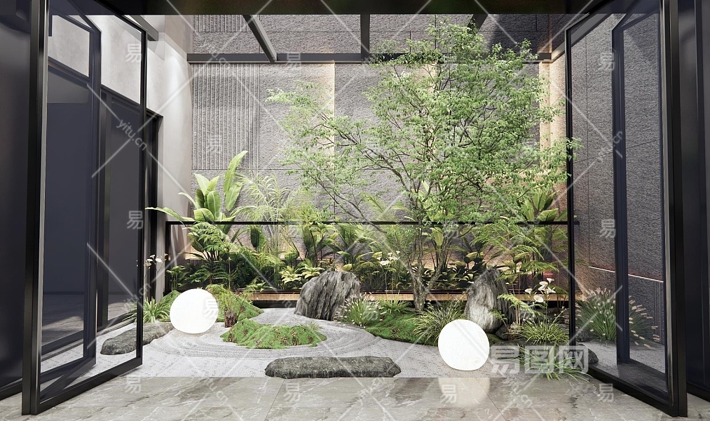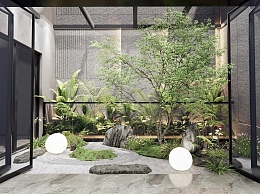 现代中庭植物景观造景3D模型下载