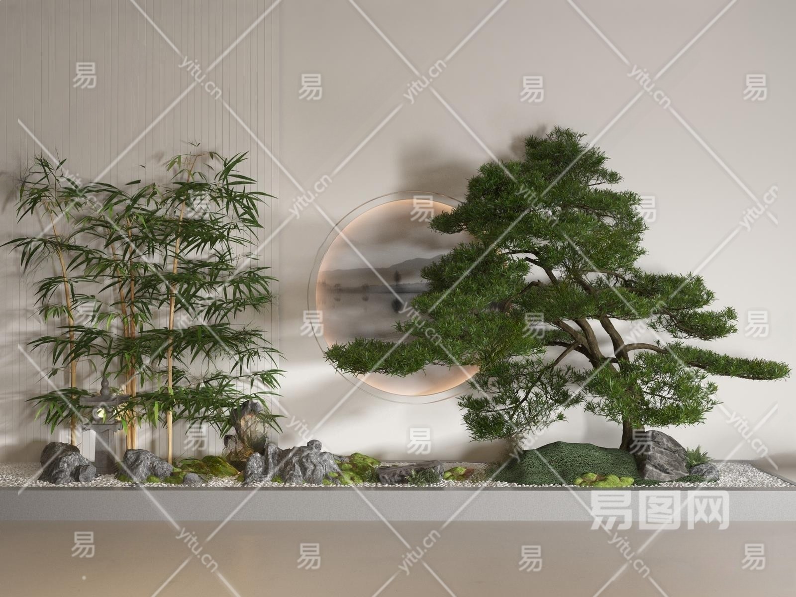 新中式景观造景3D模型下载