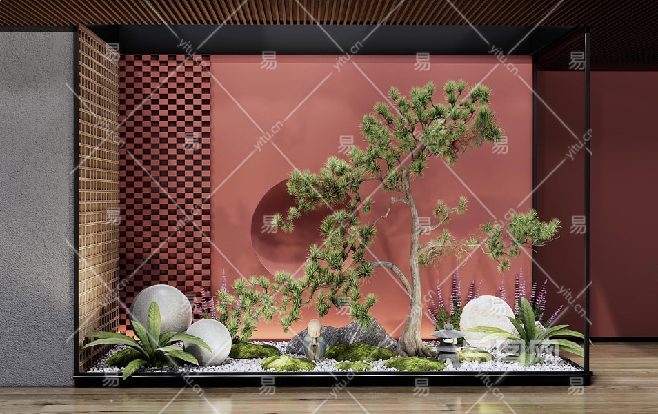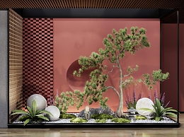 新中式室内植物景观造景3D模型下载