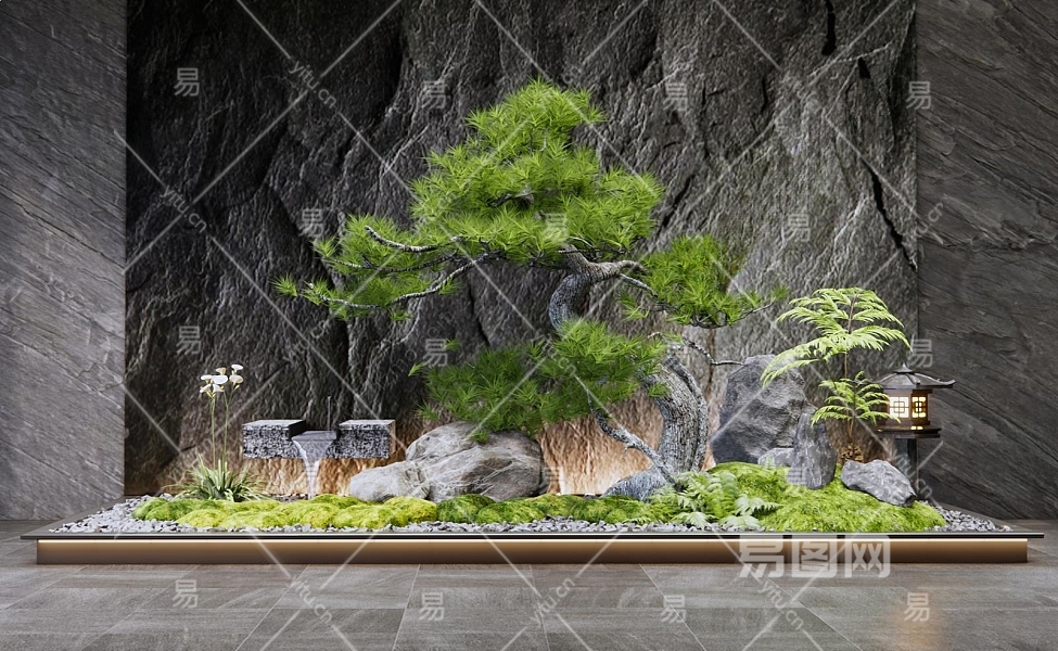 现代室内景观造景3D模型下载