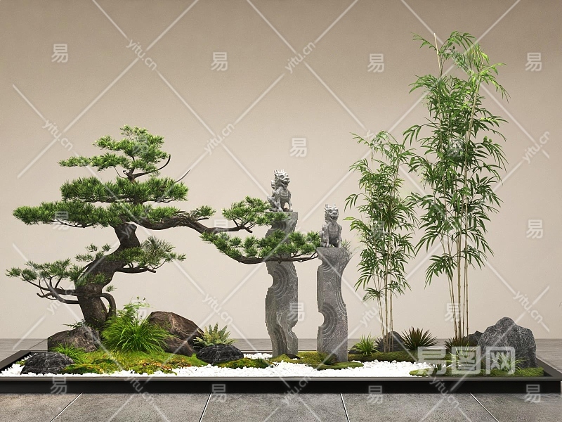 新中式景观造景3D模型下载