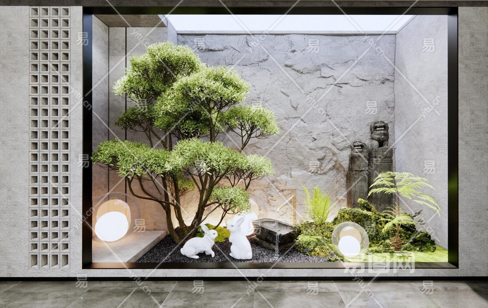 现代天井景观造景3D模型下载