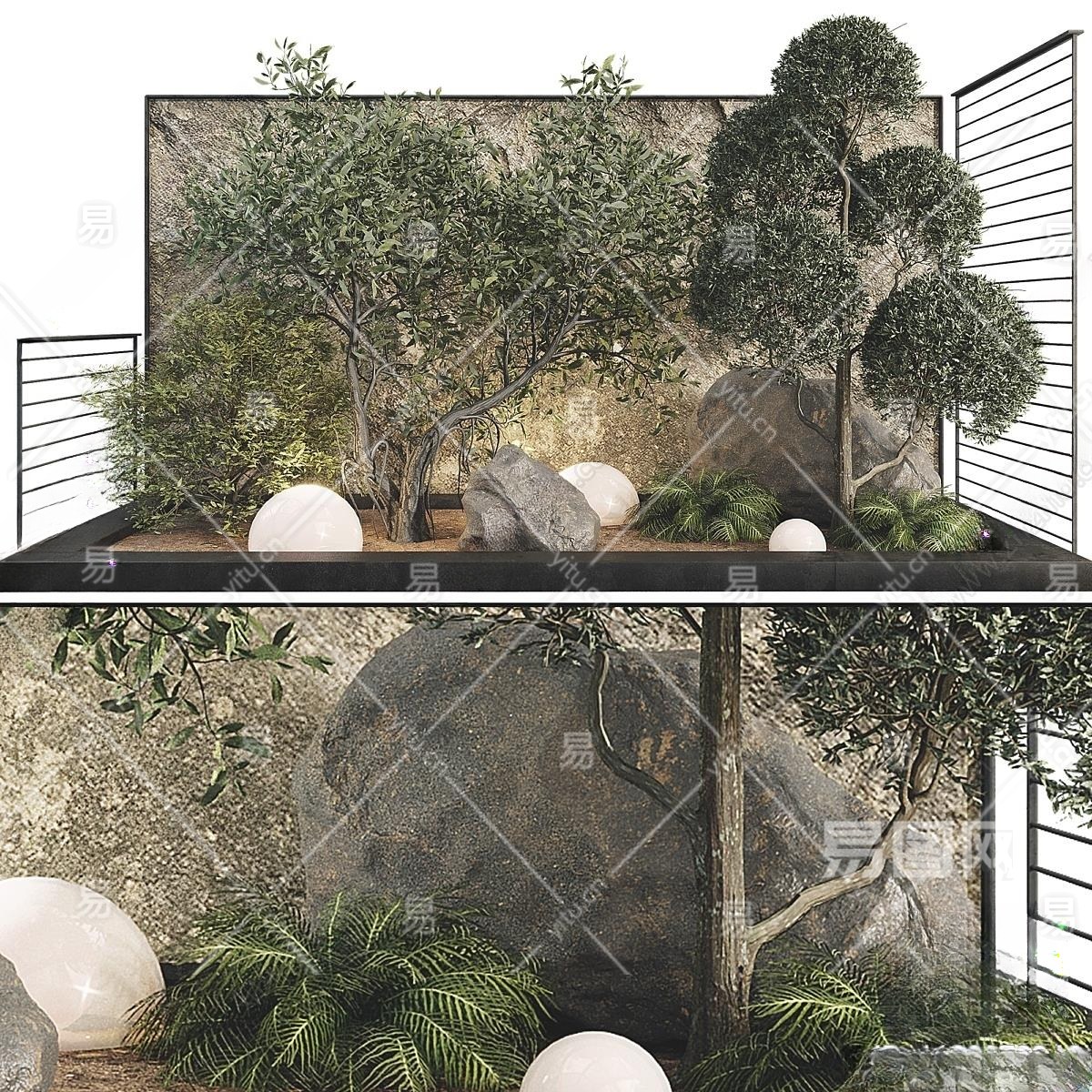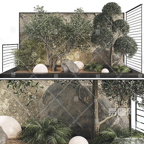 现代绿植景观造景3D模型下载