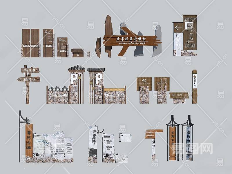 新中式旅游区导向牌3D模型下载