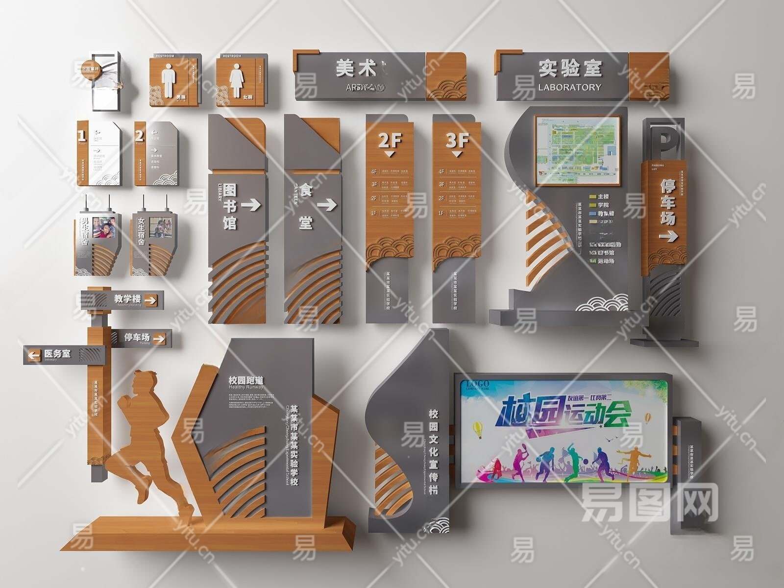 现代学校校园指示牌3D模型下载