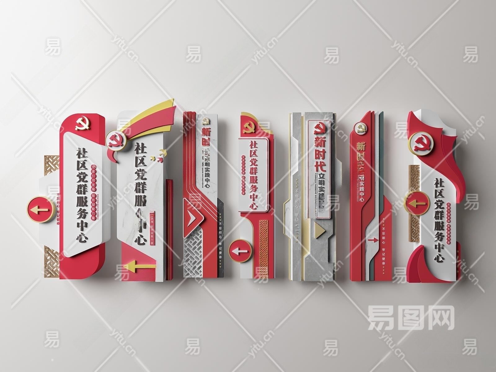 现代党建指示牌3D模型下载
