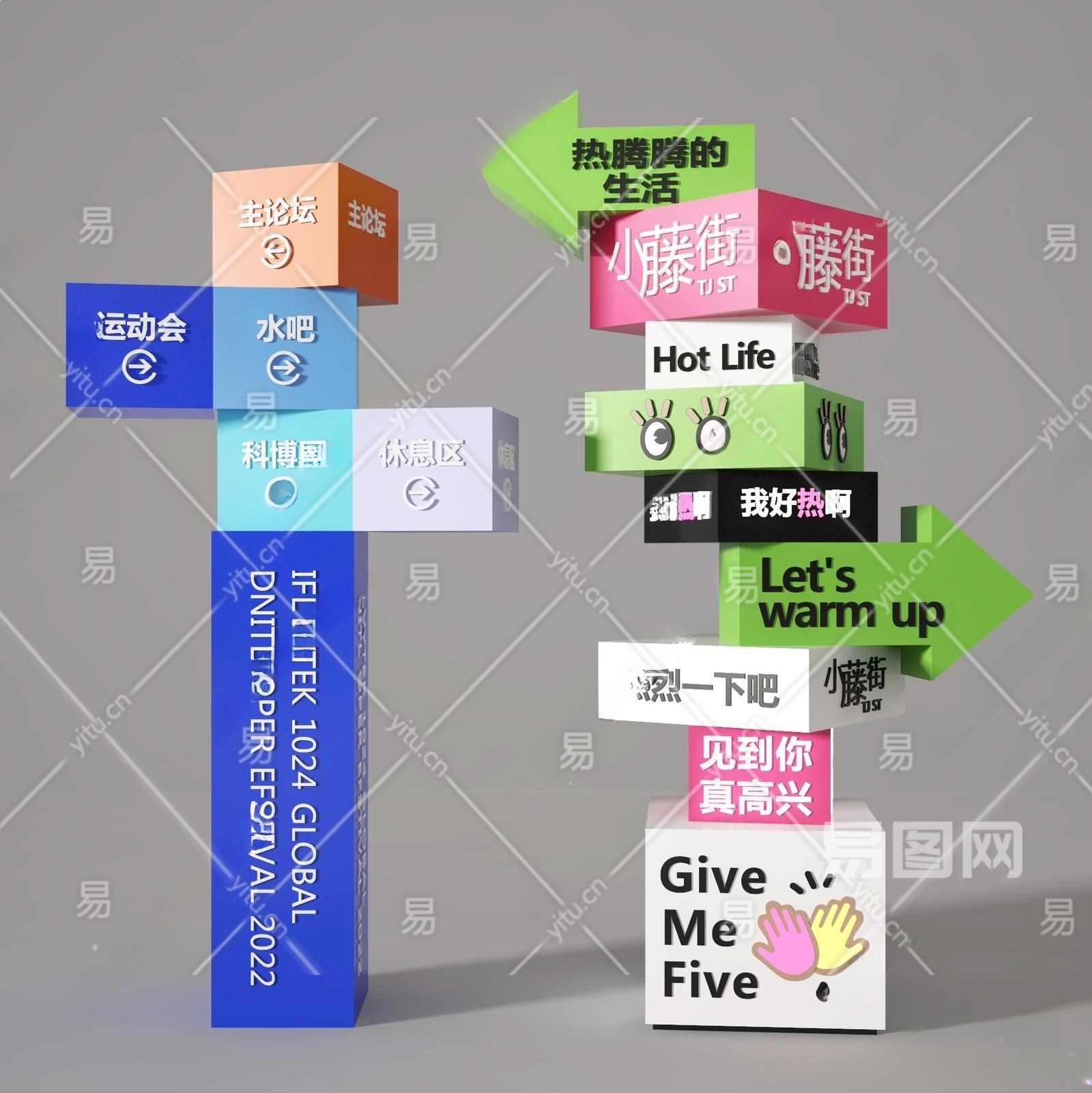现代指示牌3D模型下载