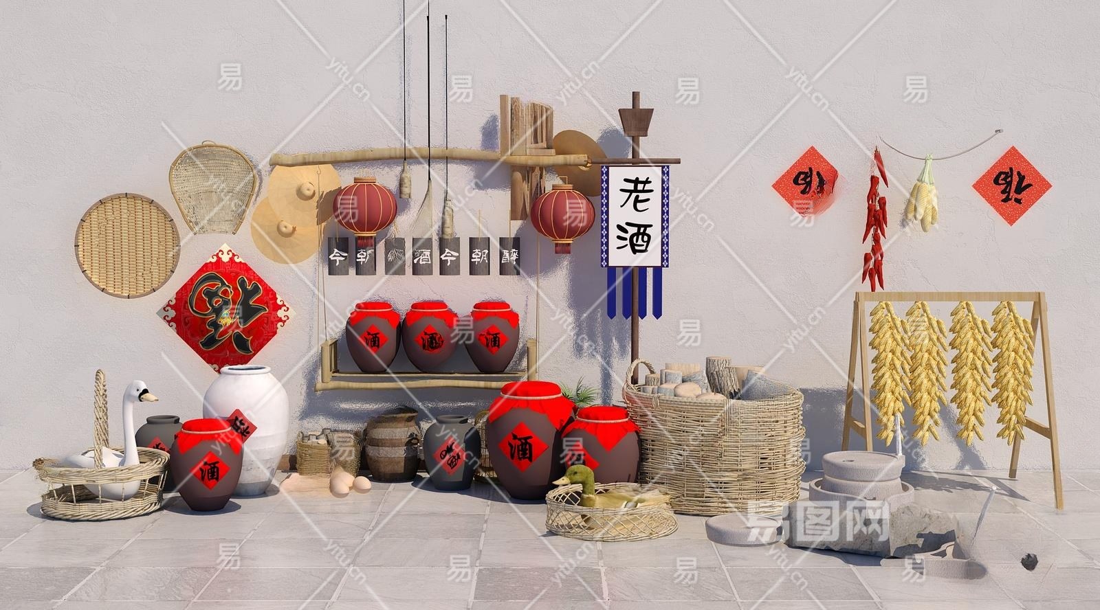 中式乡村小品3D模型下载