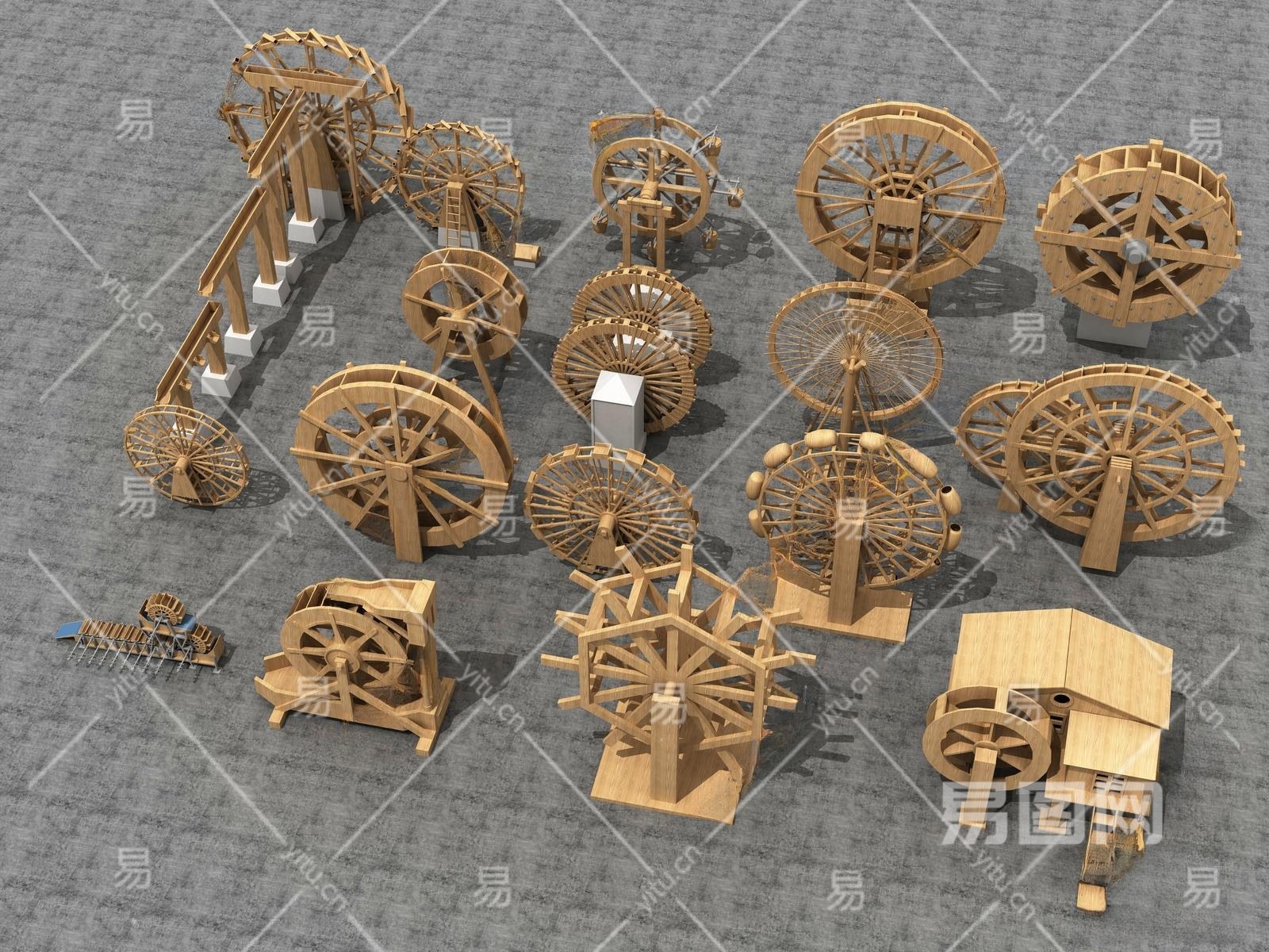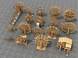 中式水车3D模型下载