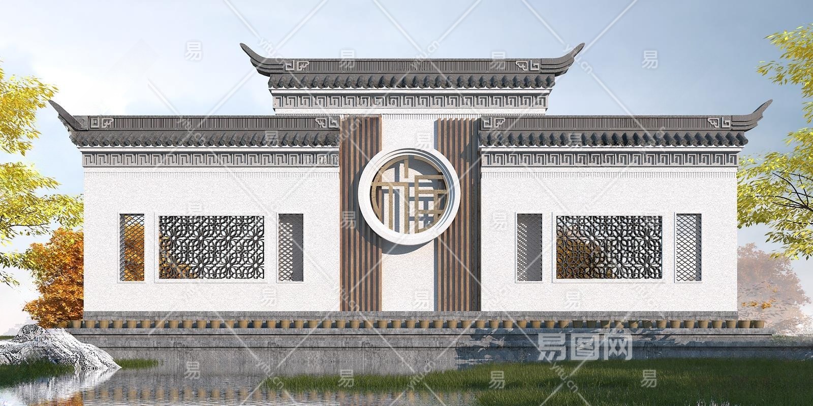 中式景墙3D模型下载