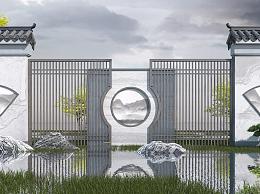 新中式景墙3D模型下载
