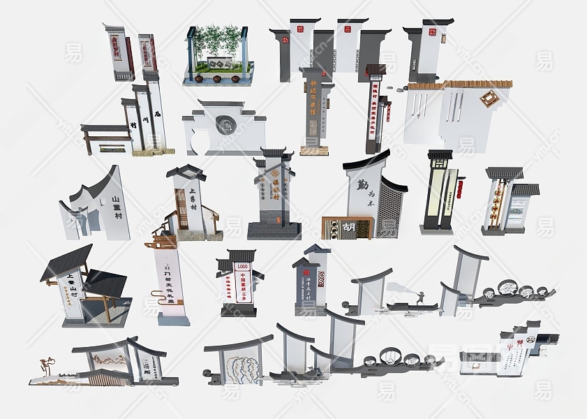 新中式村标3D模型下载