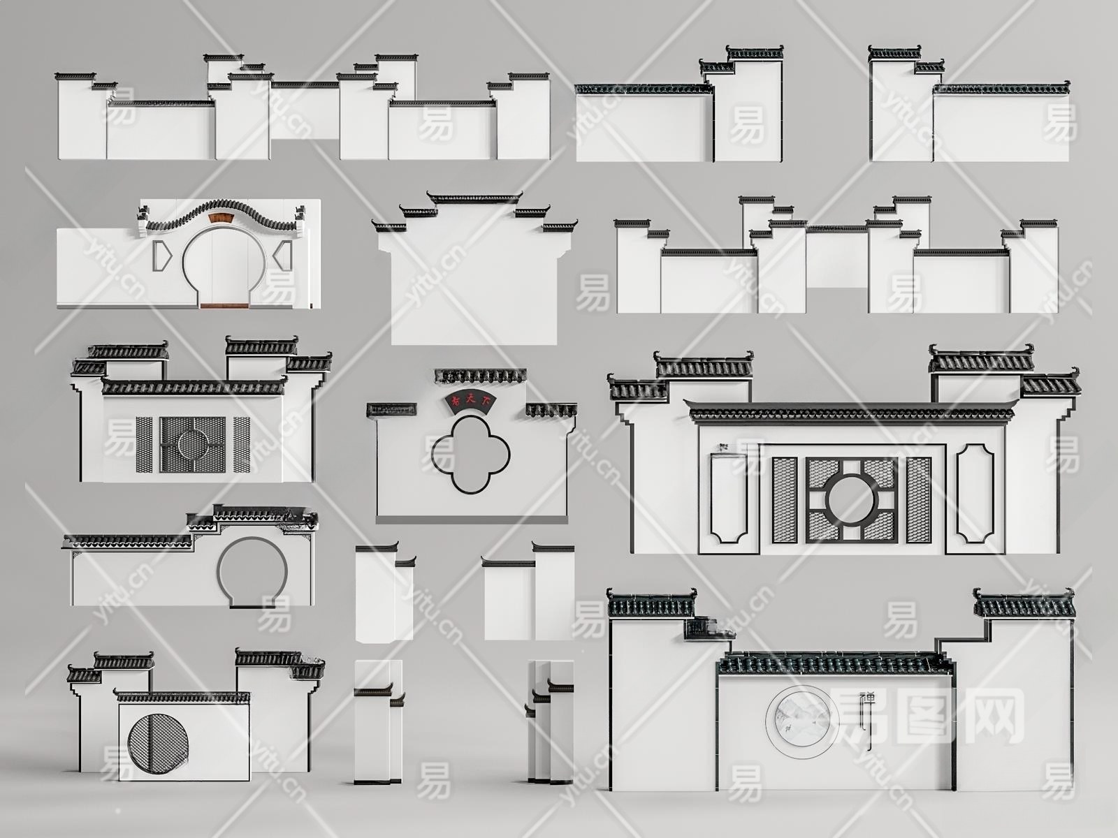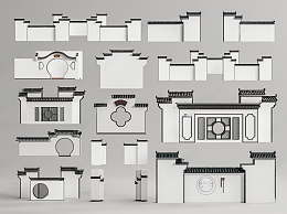 中式徽派景墙3D模型下载