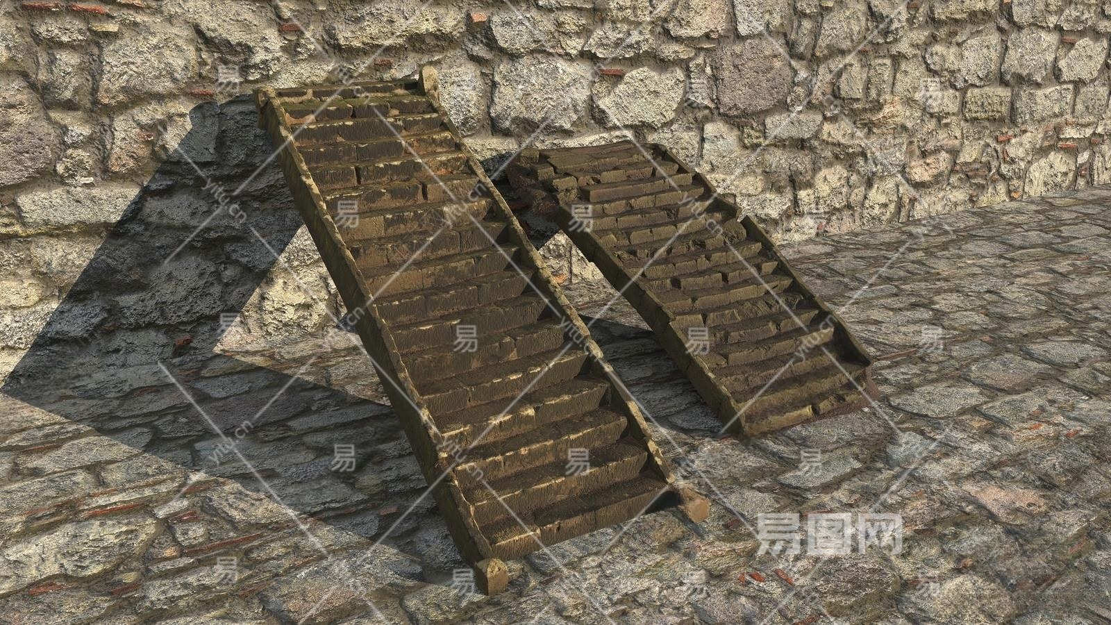 中式石头台阶3D模型下载