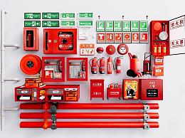 现代灭火器材3D模型下载
