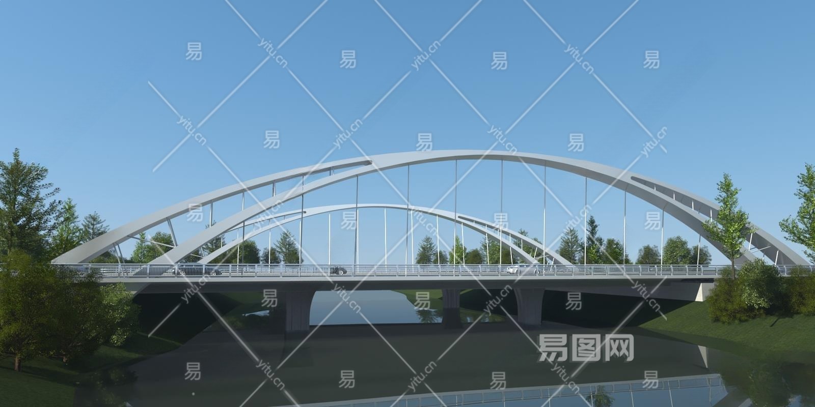 现代跨河桥3D模型下载