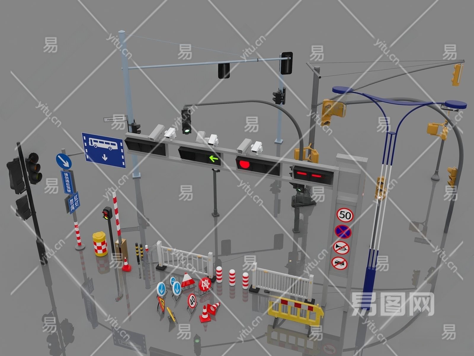 现代道路设施3D模型下载