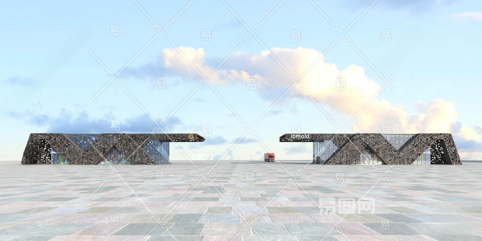 现代入口大门门3D模型下载