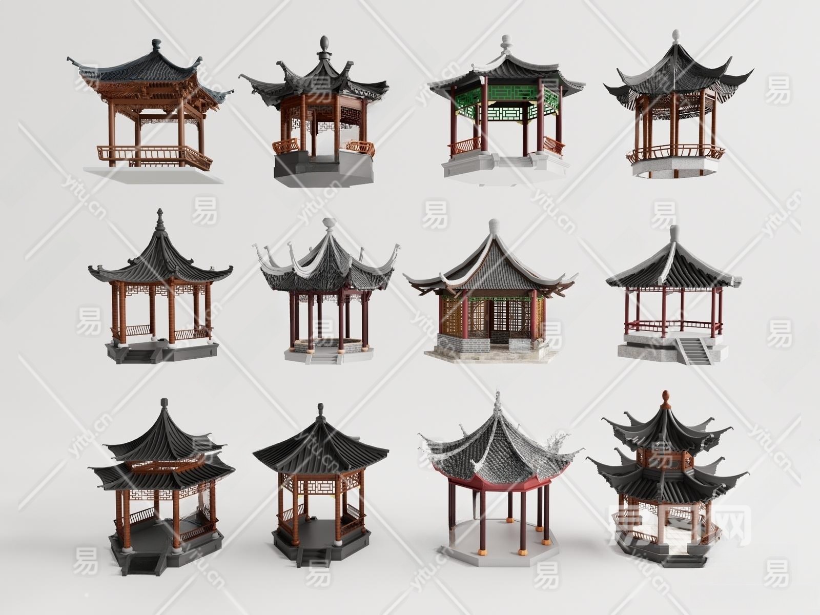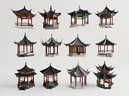 中式亭子3D模型下载