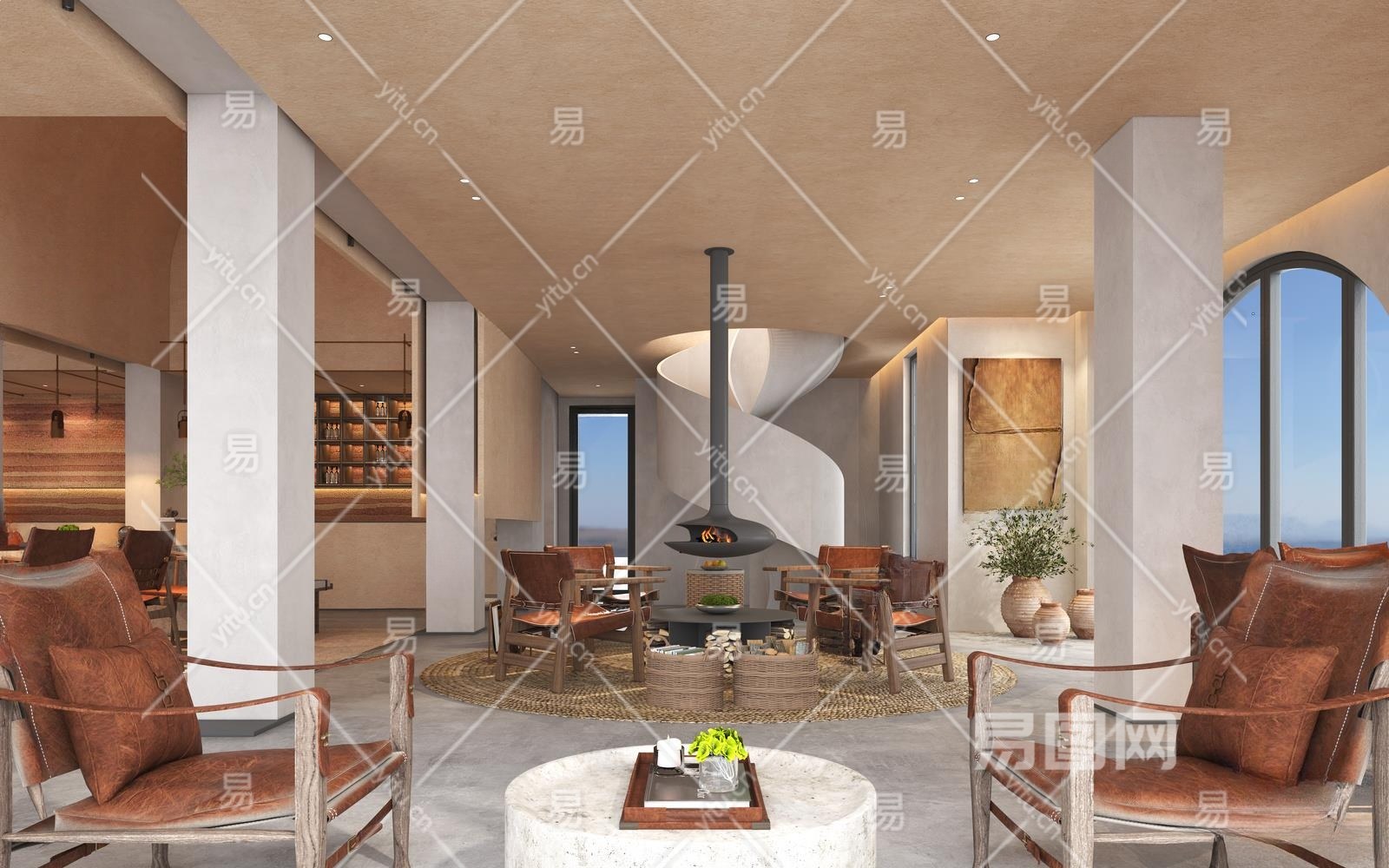 侘寂隐庐酒店大堂3D模型下载