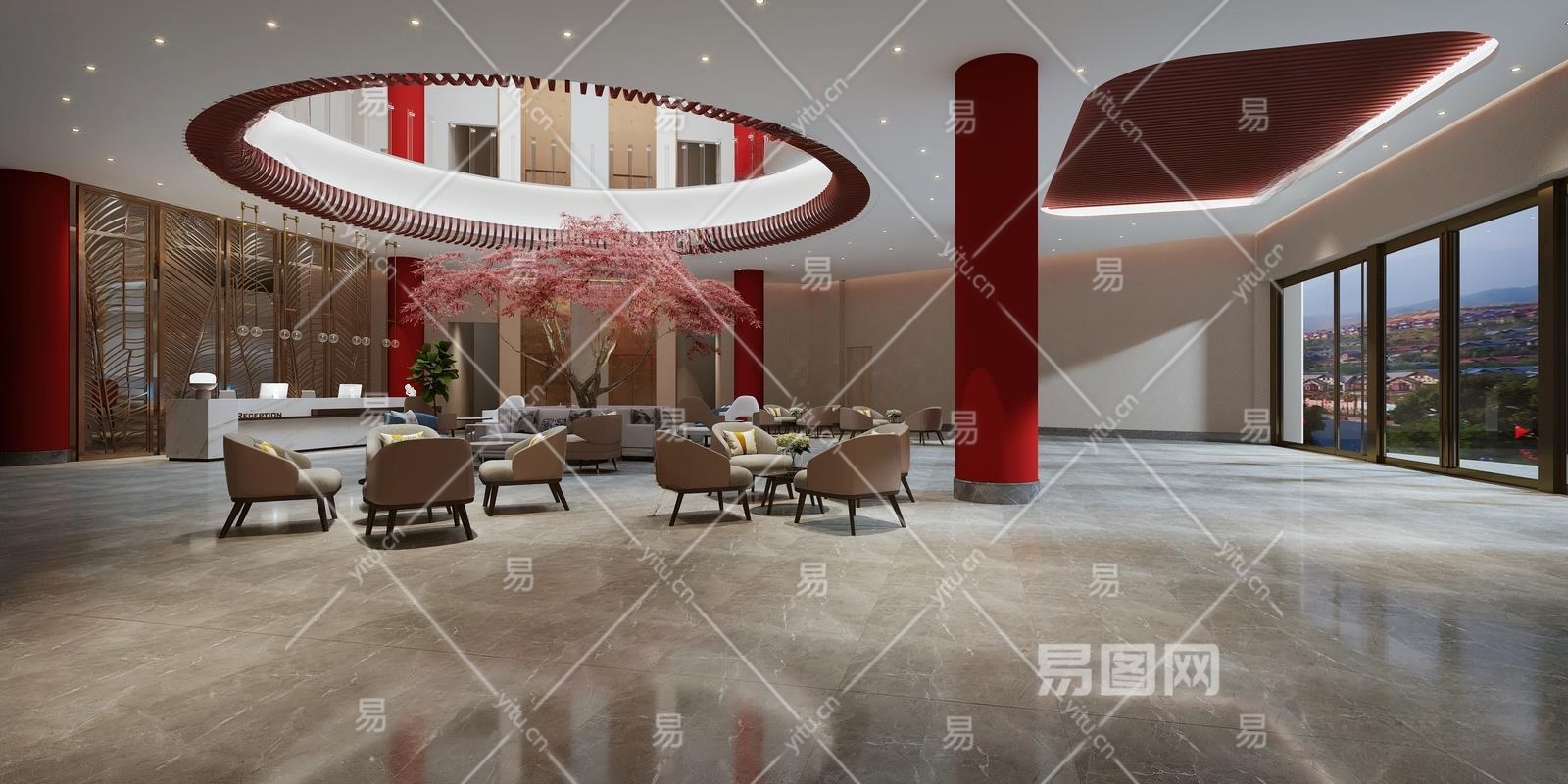 现代酒店大堂3D模型下载