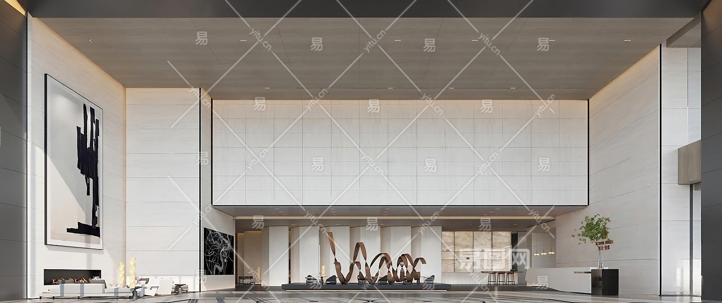 现代酒店大堂3D模型下载