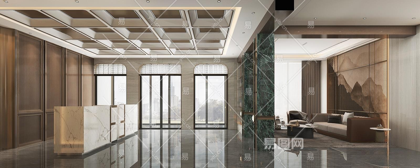 现代酒店大堂3D模型下载