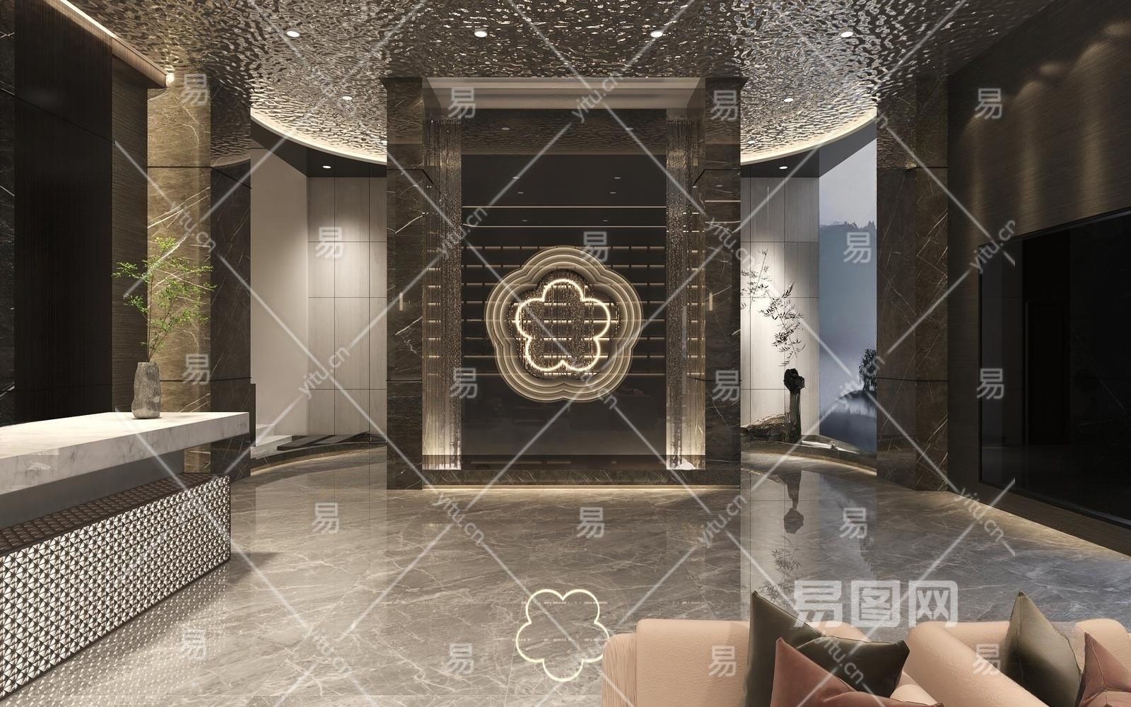 新中式酒店大堂3D模型下载