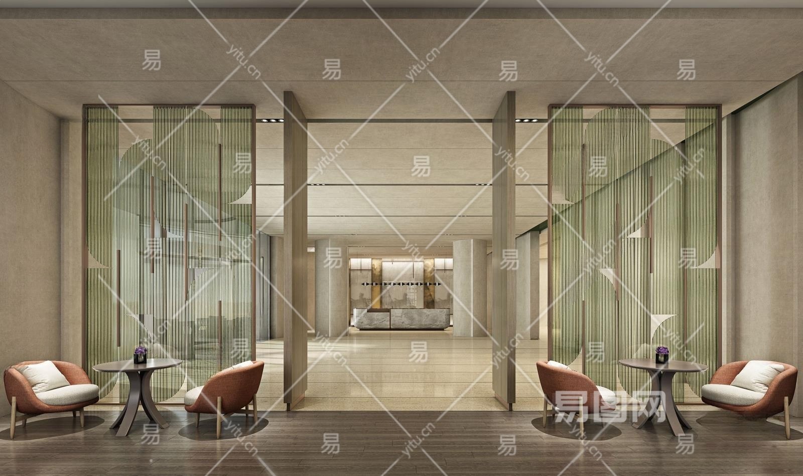 现代酒店大堂3D模型下载