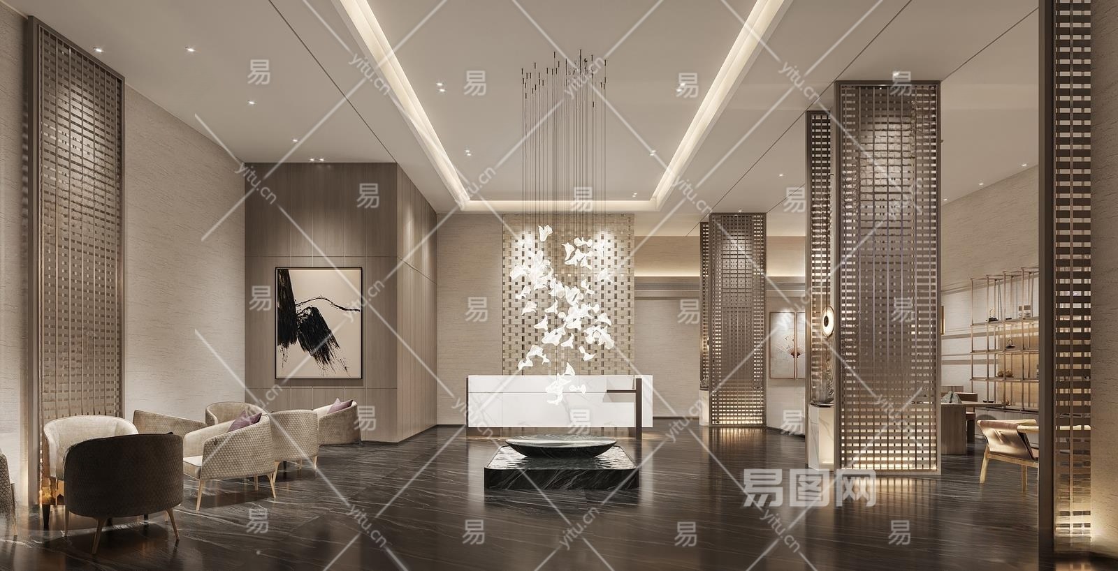 现代酒店大堂3D模型下载