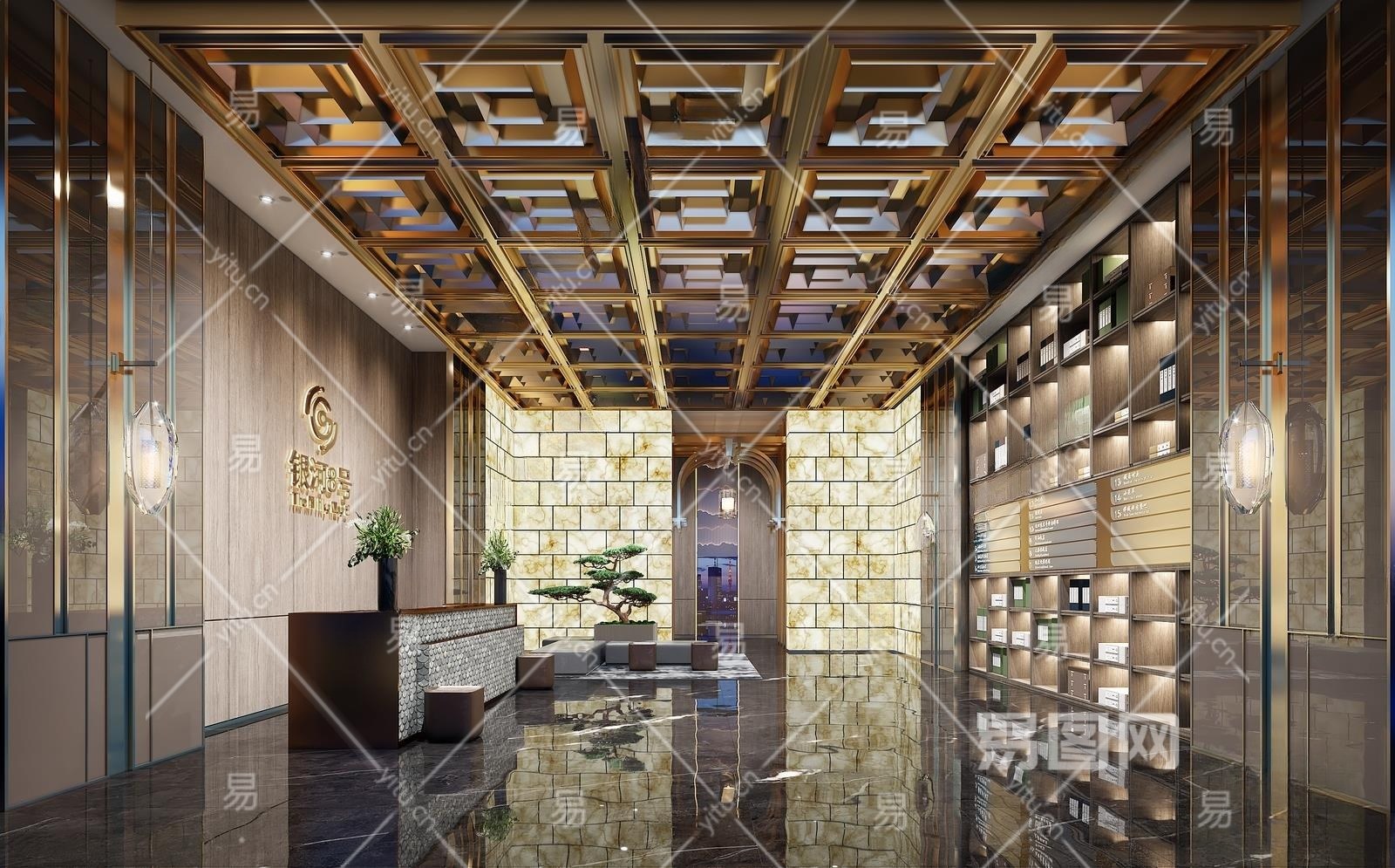 新中式酒店大堂3D模型下载