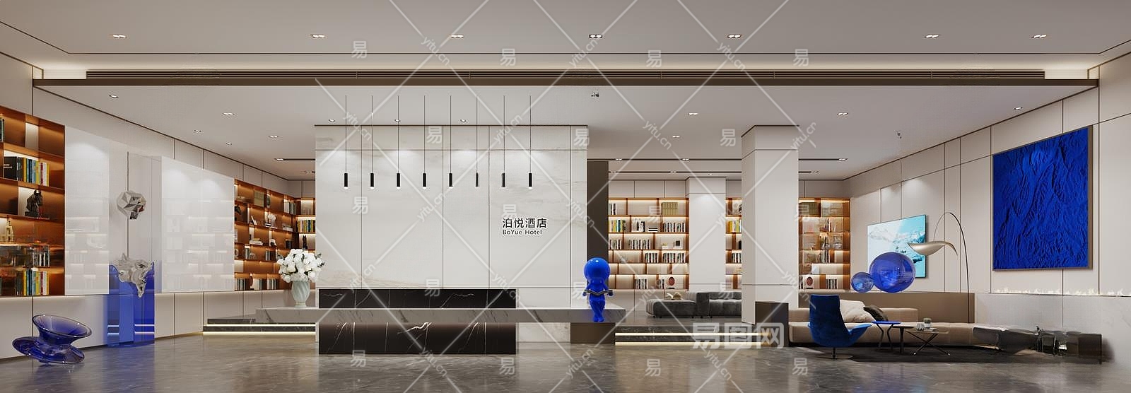现代酒店大堂3D模型下载