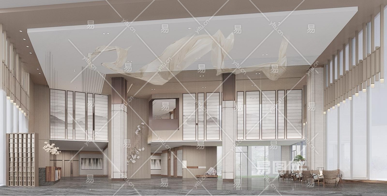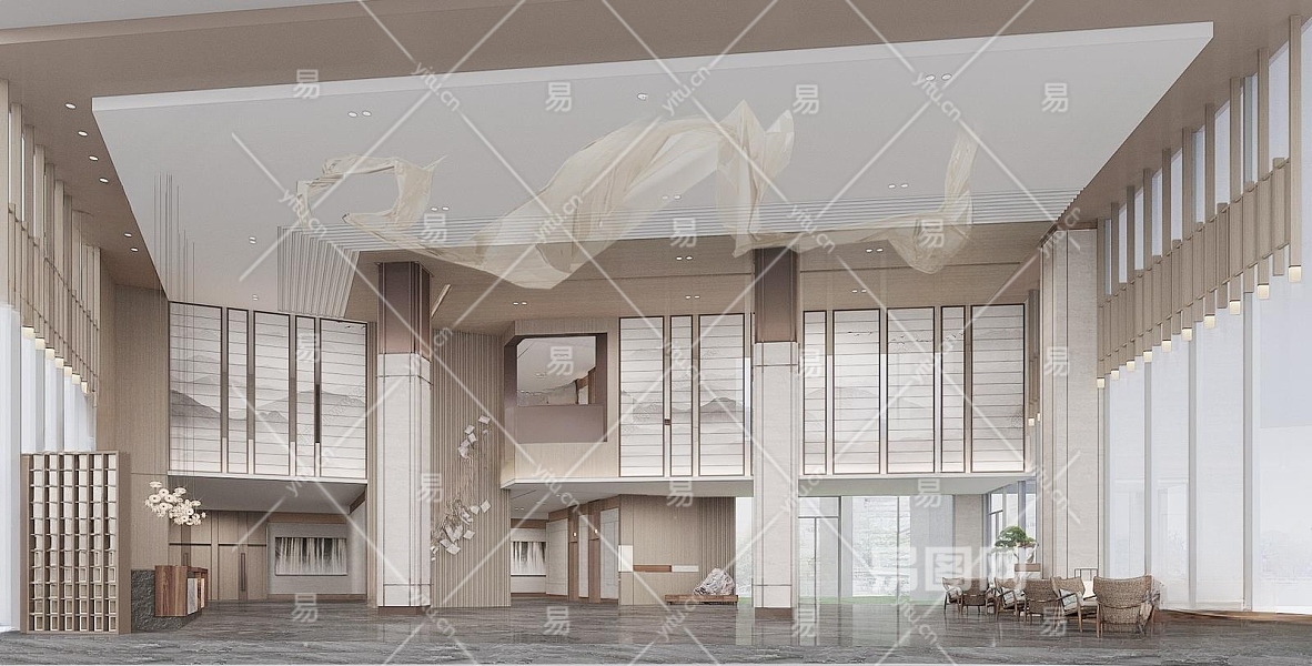 新中式酒店大堂3D模型下载