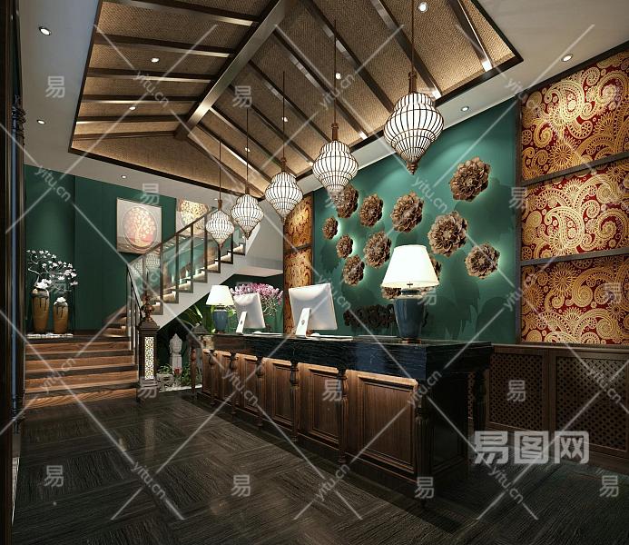 当前的位置:首页 > 3D模型 > 酒店空间 > 大堂 > 新中式酒店大堂 前台 端景 楼梯间 斜顶 接待区