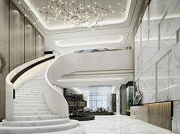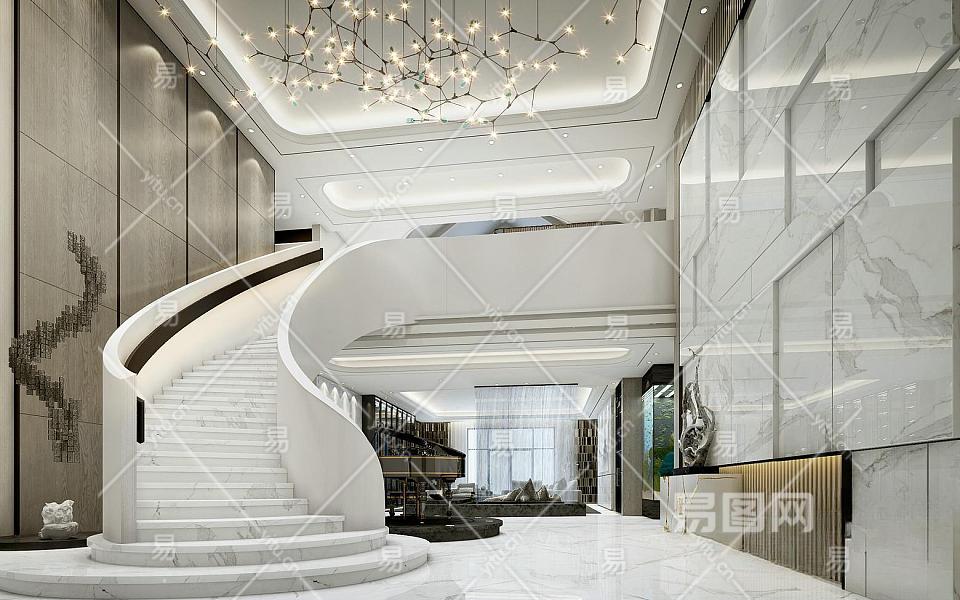 现代酒店大堂 接待区 楼梯间 前台 背景墙