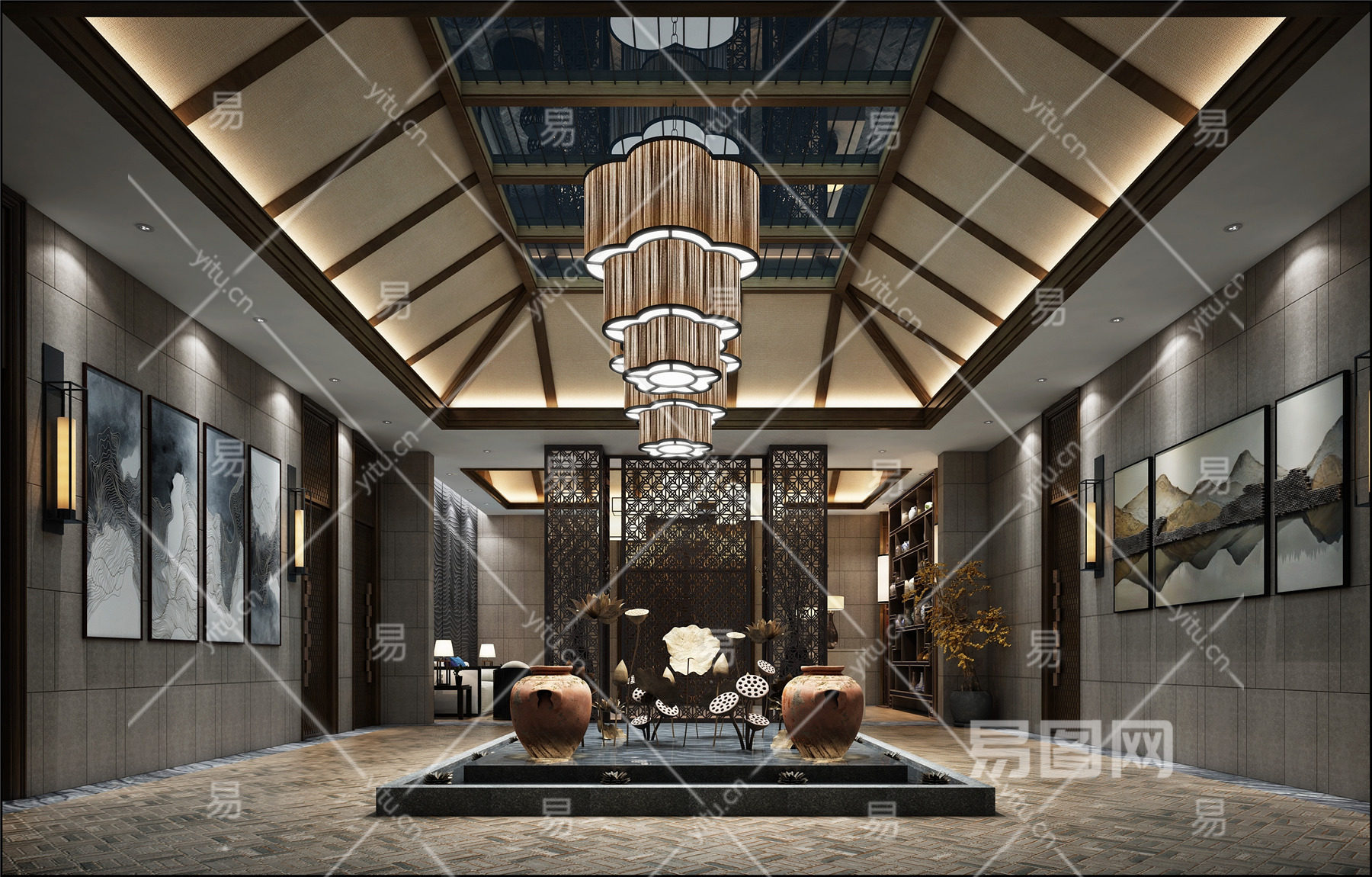 当前的位置:首页 > 3D模型 > 酒店空间 > 大堂 > 新中式酒店大堂 前台 酒店接待处 大厅 酒店大厅