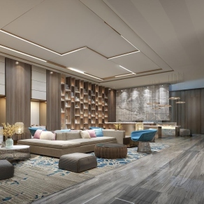现代酒店大堂 宾馆大堂 公司前台 吧台 沙发茶几背景墙 店招 大堂