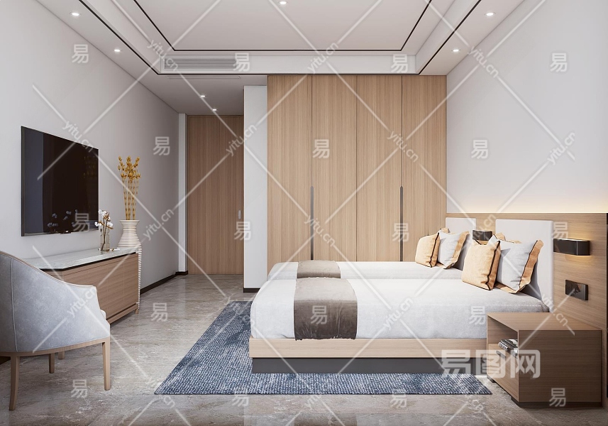 现代酒店客房3D模型下载