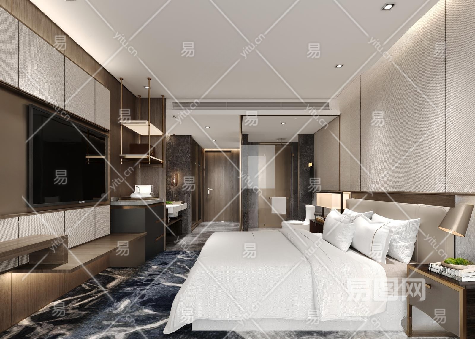 现代酒店客房3D模型下载