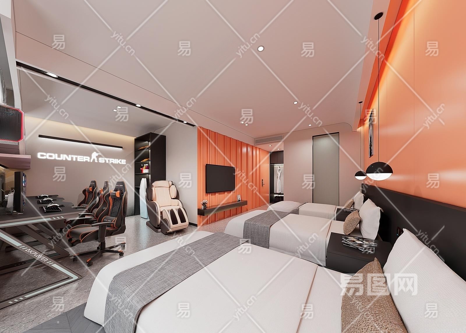 现代电竞酒店客房3D模型下载