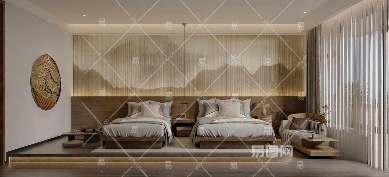侘寂酒店客房3D模型下载
