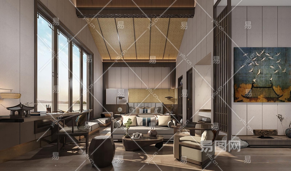新中式酒店客房3D模型下载