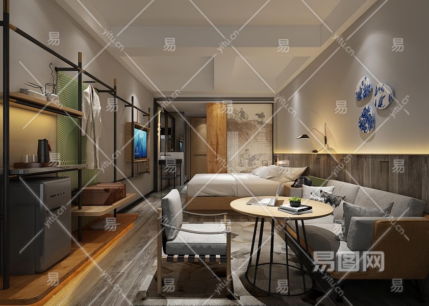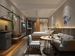 工业风酒店客房3D模型下载