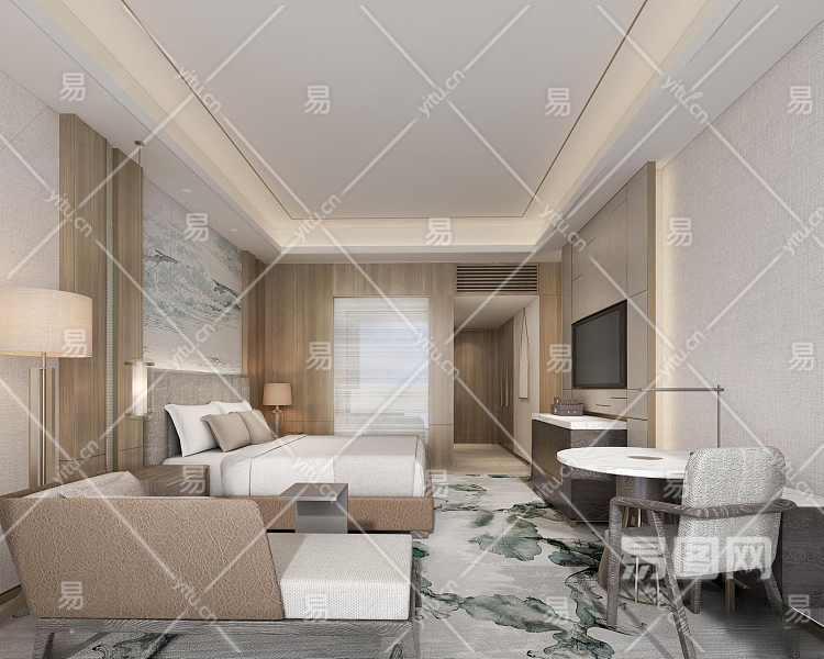 现代酒店客房3D模型下载