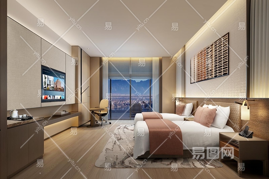 现代酒店客房3D模型下载