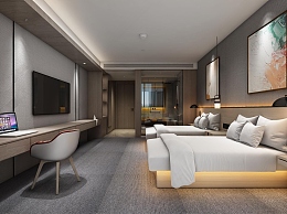 现代酒店客房3D模型下载
