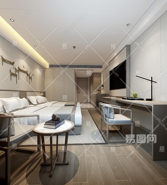 新中式酒店客房3D模型下载