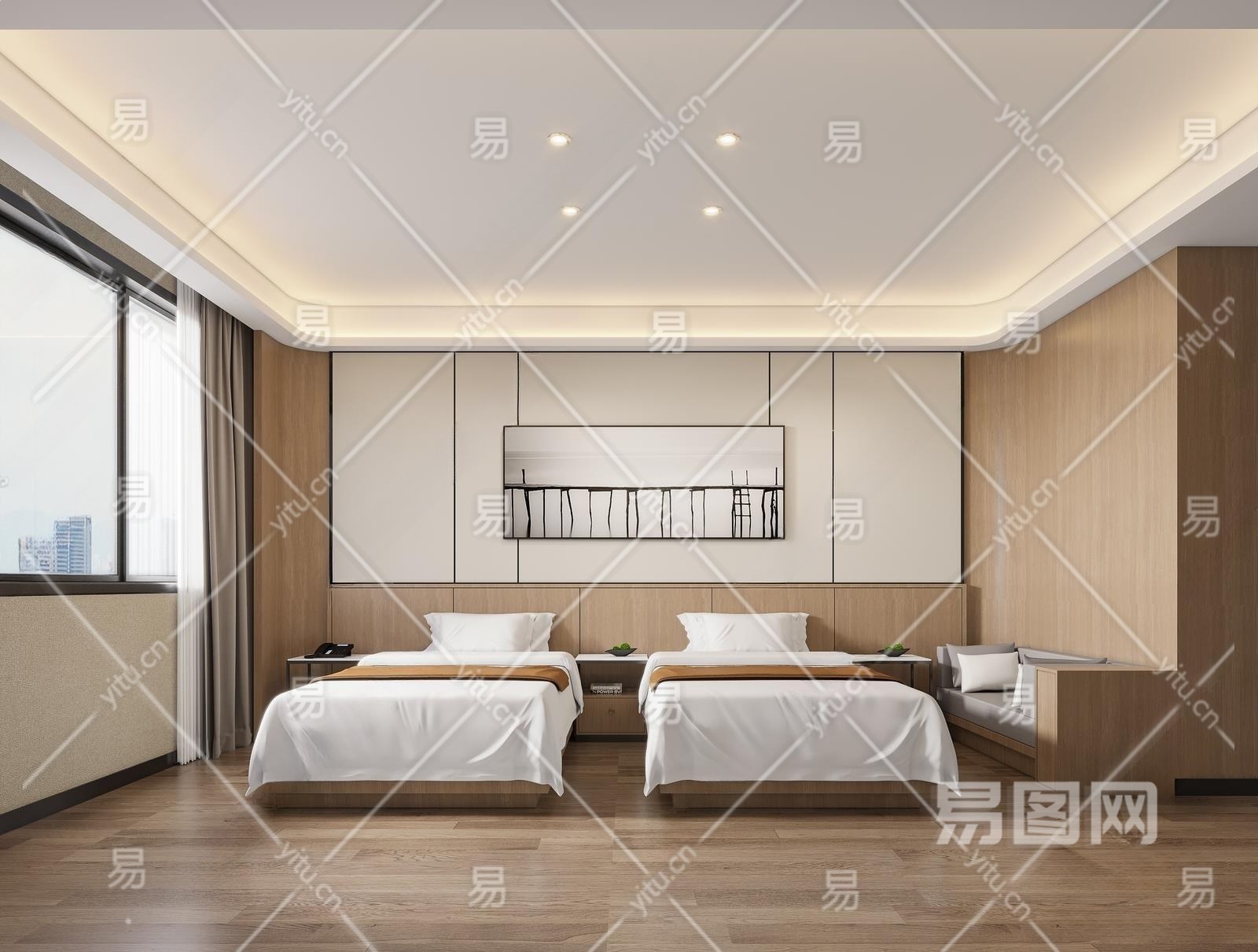 现代酒店客房3D模型下载