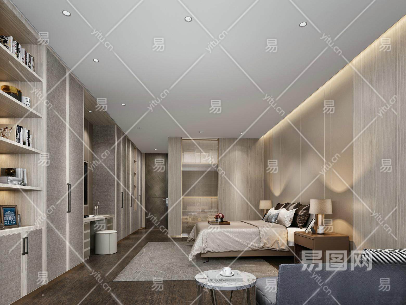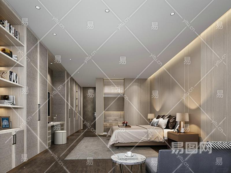 当前的位置:首页 > 3D模型 > 酒店空间 > 客房 > 现代酒店客房 书柜 沙发茶几组合 双人床 抱枕 床头柜 台灯